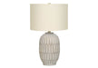 - Stylish Design: Vase-like shape in textured grey cream resin with an ivory linen drum shade and gold finial adds fashionable, eclectic style to any room.