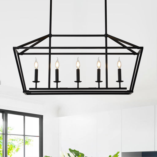 View full details5 Light Farmhouse Kitchen Island Lighting, 5 Light Industrial Linear Chandelier For Dining Room Metal Hanging Pendant Light Fixture For Bedroom Living Room Hallway Conference Room - Matte Black