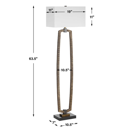 The Relic Floor Lamp Captures Bohemian Charm With Its Deeply Antiqued Gold Finish With Hand-carved Textures Along The Unique Parallel-style Base. I...