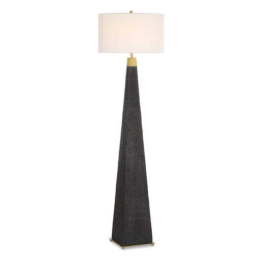 The Lathey Floor Lamp Showcases A Tapered Base With A Burned Wood Look Replicating The Timeless Shou Sugi Ban Technique Of Preserving Wood, Accente...