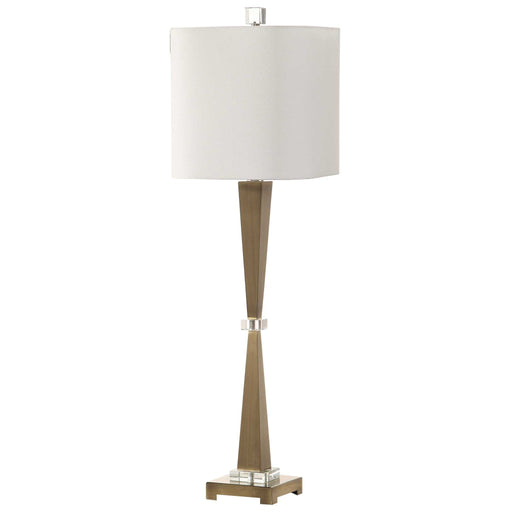 This Simple, Contemporary Buffet Lamp Features Clean Lines And A Versatile Style. The Iron Base Is Finished In A Plated Antique Brass, Displayed On...