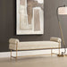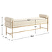 A Chic Accent Bench, Featuring A Supportive Yet Stylish Stainless Steel Frame Finished In Brushed Brass With Fixed Bolster Pillow Accents. Upholstered In A Textured Boucle Polyester In Pearl White. Seat Height Is 19".