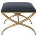 Classic Yet Stylish, This Small Bench Features A Curved Iron Frame Finished In An Elegant Gold Leaf. The Cushioned Top Is Upholstered In A Textured Navy Blue Fabric, Doubling As A Comfortable Seat Or Footrest.