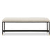 This Bench Features A Sleek Matte Black Iron Frame And Is Paired With A Plush Upholstered Seat In A Casual Off-white Polyester Blend With Wool-like Texture, Accented With Petite Brushed Brass Feet Caps.