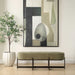 The Angular Bronze Iron Frame Of The Merino Bench Cradles The Plush Seat, Upholstered In A Finely Textured Moss Toned Polyester.
