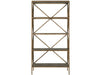The Cocoa Etagere combines rich wood shelving with a sophisticated Smoked Gold metal frame featuring geometric X-pattern bracing. This tall, slender piece provides display storage while creating striking vertical interest, exemplifying the successful marriage of natural materials and contemporary metal accents.
