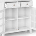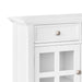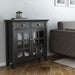 • Features two drawers for keys, gloves and other items and two tempered glass doors with interior storage and two adjustable shelves