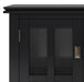 - Features 2 tempered glass doors that open to two adjustable shelves for versatile storage