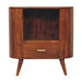 - Artisan Furniture Solid Wood T-bar Cortez Chestnut Open Slot Cabinet - This simple and modern cabinet is made from 100% solid mango wood in a chestnut finish and has Nordic style legs, storage space is offered with 1 small drawer which has a gold t-bar handle and a large open slot which is perfect for displaying a plant candle or ornament. Its displaying minimalist design means it can be suited to many interiors.