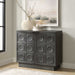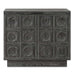 A Two Door Cabinet Featuring A Striking Carved Circular Design, Constructed From Solid Elm And Elm Veneer. The Rich Ebony Stain Highlights The Dramatic Wood Grain. Two Complementing Solid Iron Door Pulls Make For Stylish And Effortless Functionality. Has One Interior Adjustable Shelf.