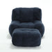 Modern Indoor Fluffy Bean Bag Chair With Memory Foam And Ottoman Super Soft Velvet - Blue