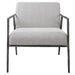 With Clean Contemporary Lines, This Open Frame Design Features A Textured Cast Iron Frame In A Natural Distressed Charcoal Finish. Paired With A Tight Upholstered Seat In A Casual Ivory And Light Gray Boucle Fabric.