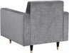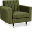 Cozy up to the comfort of this Lola Chair. Its rich color adds a jolt of excitement and fun to your space, shaking things up in a neutral-colored room. The back is channel tufted for a beautiful, contemporary look and to help the back cushioning maintain its welcoming loft. Elegant slant-tipped legs with tips lend this chair a charmingly modern finish and provide a sturdy foundation. Add it on its own, or add the matching sofa and loveseat for a coordinated look.