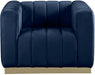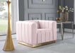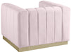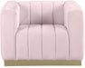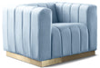 Seat guests in the epitome of comfort and style with this Marlon velvet chair. This piece is just the thing to showcase your modish style while ensuring total enjoyment from all who are lucky enough to relax on its channel tufted seats. The soft velvet upholstery adds a beautiful touch to your space and feels great against your skin while the brushed stainless steel base lends it a contemporary finish.