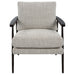 A Modern Mix Of Materials With Hints Of Masculinity, This Accent Chair Features A Textured Cast Iron Frame In Dark Bronze With Dark Walnut Finished Solid Oak Arms. Tailored In A Neutral Polyester Weave In Ivory And Beige Tones.