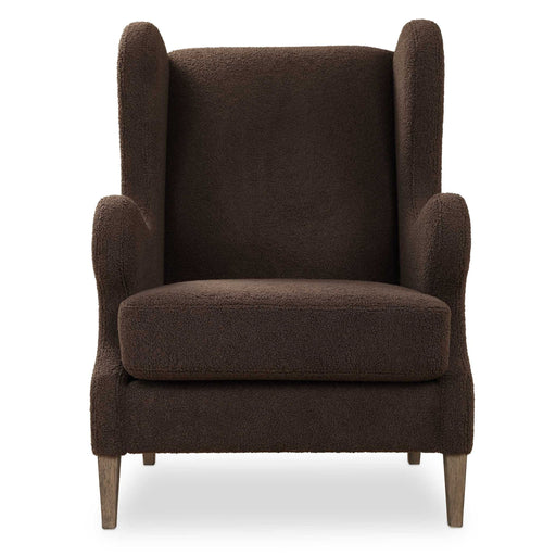 A Classic Wingback Chair With A Modern Twist. Dramatic Curved Lines Are Accentuated By The Rich Chocolate Faux Shearling. Resting On Solid Wood Tap...