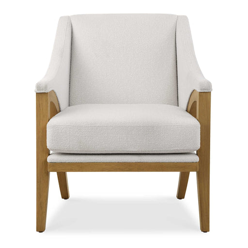 Rolled Arms Of The Juncture Accent Chair Encapsulate The Decorative Legs In Solid Oak With A Natural Finish. Fully Upholstered In A Textured Boucle...