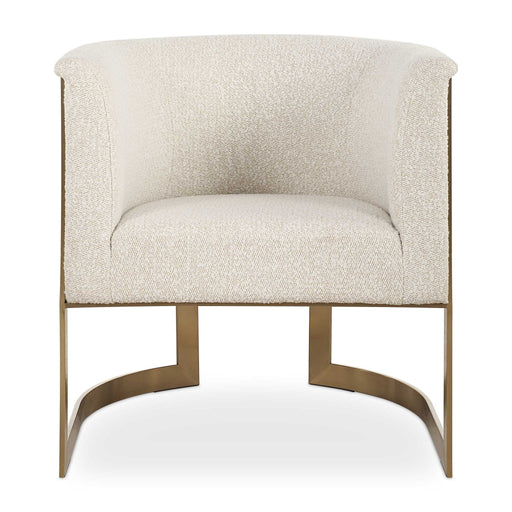 Stunning From Every Angle, The Wrap Around Stainless Steel Frame Is Finished In Brushed Gold, Encapsulating A Plush Seat Upholstered In A Knubby Bo...