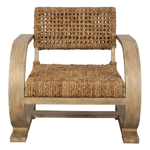Inspired By Casual Coastal Style, This Accent Chair Features A Solid Mango Wood Frame In A Natural Finish With Light Whitewashed And Distressed Det...