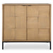 Defined By Mindi Wood Grain Placed In A Geometric Pattern Aerie Adds Character To Any Room. The Wood Is Naturally Finished Showing Off Its Rich Grain Structure Accentuated By Matte Black Metal Legs And Matching Door Pulls. Adjustable Shelves Add To The Functionality Of This Versatile Cabinet.
