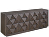The Sable Credenza makes a geometric statement in any dining or living space. Its deep Sable finish highlights the intricate, faceted design of the doors, creating a focal point that's both stylish and functional for storage and display.