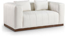 A minimalist masterpiece, the Mallina vegan leather loveseat combines form and function for a modern and stylish look. Its classic design and rich leather upholstery make it a sophisticated statement piece that will never go out of style. The clean lines, paired with a brown walnut finished base, create a sophisticated and inviting atmosphere.