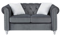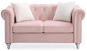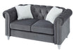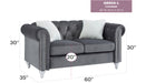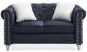 • Contrasting Throw Pillows: Included contrasting throw pillows complete the classic aesthetic of the loveseat.