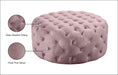 Rest weary legs at day's end atop the welcoming comfort of this Addison velvet ottoman. This Hollywood-inspired ottoman features deep button tufting from top to bottom for a luxe look and is covered in velvety upholstery for added glam. The vibrant color makes a bold statement in your space. This substantially sized ottoman also doubles as an extra seat and is padded thickly for supreme comfort.