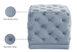 Unwind in luxury with your feet propped atop this Stella Ottoman/Stool. Luxe velvet upholstery covers every square inch of this stool's top and sides, giving it a glamorously contemporary look. The soft color blends easily with any decor theme, and the deep button tufting in a diamond-like grid pattern adds a lavish feel while helping the stool keep its loft. Position it near your favorite easy chair to create a cozy spot to relax at day's end.