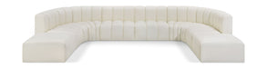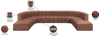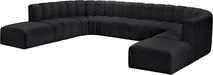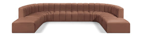 Unleash modern opulence with the Arc Vegan Leather Modular Sofa. Crafted for the modern connoisseur, this sofa injects an air of refined luxury into any space. Its sleek silhouette, upholstered in supple vegan leather, exudes timeless sophistication while the deep channel tufting adds textural intrigue, further elevating the chair's visual appeal. The modular design makes it a versatile chameleon, effortlessly adapting to your evolving needs and preferences. Whether you envision it gracing a chic living room corner, basking in the glow of a bedroom window, or adding a touch of drama to a home office, the Arc seamlessly complements your unique interior aesthetic.