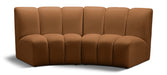 Create a seating group that works for every possible situation with this Infinity modular love seat and other pieces in the Infinity collection. Upholstered in soft Saddle velvet material that feels great against the skin and offers long-wearing beauty, this piece fits with other Infinity items for an infinite number of combinations that get your seating requirements just right but that look just as nice when used on their own.