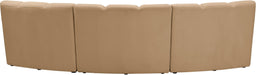 Create a seating group that works for every possible situation with this Infinity modular sofa and other pieces in the Infinity collection. Upholstered in soft Camel velvet material that feels great against the skin and offers long-wearing beauty, this piece fits with other Infinity items for an infinite number of combinations that get your seating requirements just right but that look just as nice when used on their own.