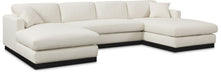 Gather your whole crew for family movie night on this Johanna linen textured fabric sectional sofa. Upholstered in rich linen textured fabric and featuring a natural finish solid wood base, this sectional exudes a mid-century charm that's both elegant and comfortable. The eucalyptus wood frame provides durability and ensures lasting performance and use, while the plush seat and pillowy back cushions offer a cozy seating experience.