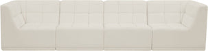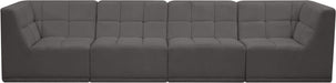 Bolster a contemporary vibe in your living room with this Relax modular sofa. Soft velvet upholstery offers delicate comfort, making this sofa cozy for anyone who sits in it. Biscuit tufting gives this sofa texture and a modern style, adding extra comfort and elegance to your living space. It s modular design allows you to create infinite configurations, making it a versatile piece to add to your home. A latch underneath the sofa makes it easy to attach to other pieces.