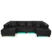 U-Shaped Sectional Sofa With RGB LED Light Strip And 6 Pillows - Black