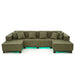 U-Shaped Sectional Sofa With RGB LED Light Strip And 6 Pillows - Green