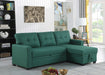 Upholstered Pull Out Sectional Sofa With Chaise - Green