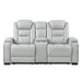 Power Sofa And Loveseat With Power Headrest, USB, LED, Bookshelf Arms, And Drop Down Table - Gray