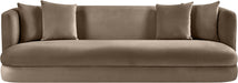 The Alder velvet upholstered sofa is an invitation to relax. Its rounded silhouette and soft velvet upholstery create a cozy and inviting space, perfect for stretching out and relaxing. Whether you're enjoying a quiet moment or hosting guests, this sofa is the perfect centerpiece for any living space.