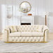 Velvet Button Tufted Sofa Couch With 2 Pillows 3 Seater Luxury Chesterfield Sofa Set With Stainless Steel Accents For Living Room - Beige