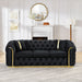 Velvet Button Tufted Sofa Couch With 2 Pillows 3 Seater Luxury Chesterfield Sofa Set With Stainless Steel Accents For Living Room - Black