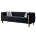 - Luxurious Design: Velvet button tufting along the back and sides, with striking gold metal legs adding a glamorous touch.