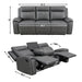Unleash movie-night magic with the Gaston Reclining Sofa, where modern glam meets plush comfort. Picture this: popcorn in hand, loved ones gathered, laughter bouncing off sleek lines and sinking into pillowy depths. Gaston's secret? A hidden drop-down console (think convenient cupholders for every drink's desire!) that transforms from armrest to entertainment hub and back again. Crafted in a captivating shade of grey vegan leather, Gaston's not just stylish, it's built to last. No-sag springs and an engineered wood frame whisper "quality" with every recline, ensuring years of happy landings and marathon movie sessions. Gaston: your new haven for cozy elegance and endless relaxation.