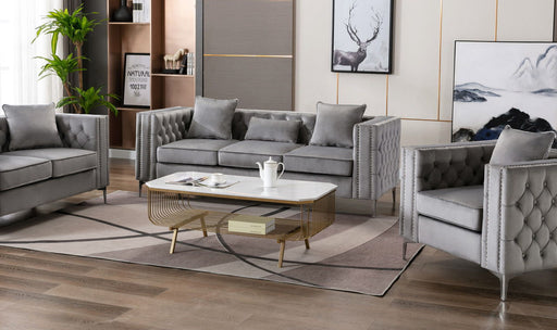 Glam up your living room with the Lorreto Collection! Crafted from fine wood and quality fabrics, this sofa features an abundance of button tufti...