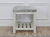 A light and airy side table companion for any room, Canova offers the elegance of a marble top in a more relaxed presentation. The substantial gray marble veneer top is centered on hearty legs and a slotted shelf for a clean, streamlined look that is weighty but not heavy. The Cathedral White finish over Ash Veneers and Poplar solids create a neutral but not demure aesthetic that is perfect for Coastal, Farmhouse, Transitional or just open and airy interiors. Use in a living area as a Side Table or in the bedroom as a Nightstand to provide the right accent for any room.