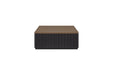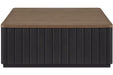• Materials and Finish: The Channel Cocktail Table is crafted from a combination of solid wood and MDF, featuring elm veneers that provide a sophisticated look and enhance its durability.