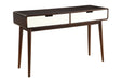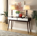 - Elegant Design: The Christa White & Espresso Finish Sofa Table features a rectangular leg design with two storage drawers, seamlessly combining style and functionality for a sophisticated look.