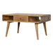 • Curved Oak-ish Coffee Table - This Coffee Table has a modern and clean design with it's rounded edges. It has been constructed from 100% Solid Mango Wood in a rich, oak-ish finish. Some features include 2 drawers which has a shiny knob and 2 open slots to place any books, photo frames, ornaments etc and 4 Scandinavian style legs.