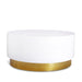 Give your living space a bold makeover with this breathtaking white lacquer metal table with a gold metal base from Meridian Furniture. Its round, contemporary design pairs perfectly with any existing modern furniture in your home. Use it as an accent piece, a main table, or a table in any room in your home. Its clean white color compares nicely with the gold metal base, which provides sturdy support in addition to appearing fabulous.