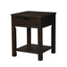 • The Flora collection brings an end table to fulfill your home with dark wood furnishings. The handleless sliding drawer makes cleaning and maintenance easy. Keep your things out of sight until you need them! More storage is available on the bottom shelf for books, decorations, portraits, etc. Perfect for your living room or bedroom.